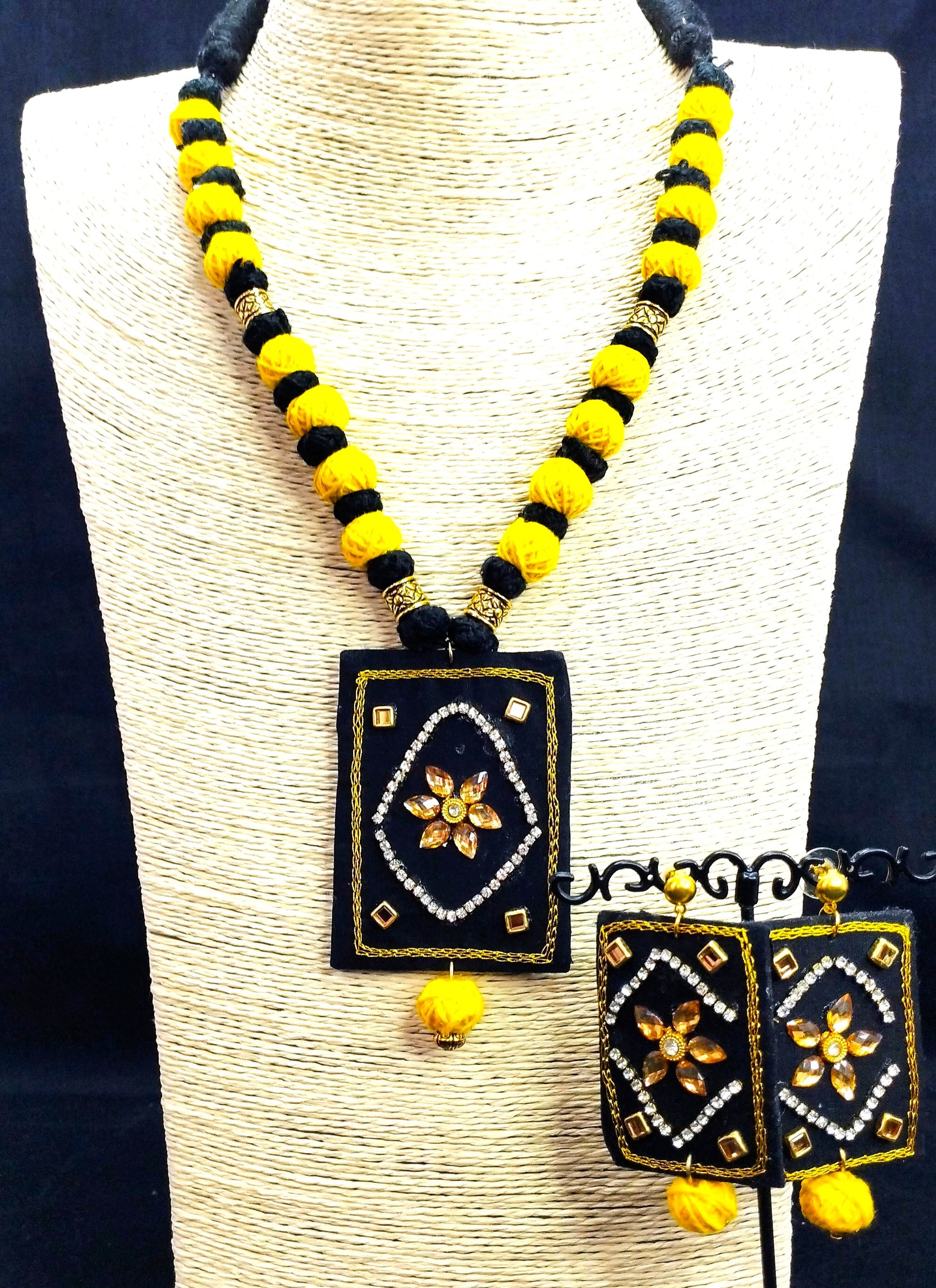 Style tips: Adorn yourself with this beautiful black and yellow cotton beads necklace. With a modern look, it is the perfect accessory for every occasion, from casual office wear to elegant party wear. Make a statement without compromising on timeless grace.