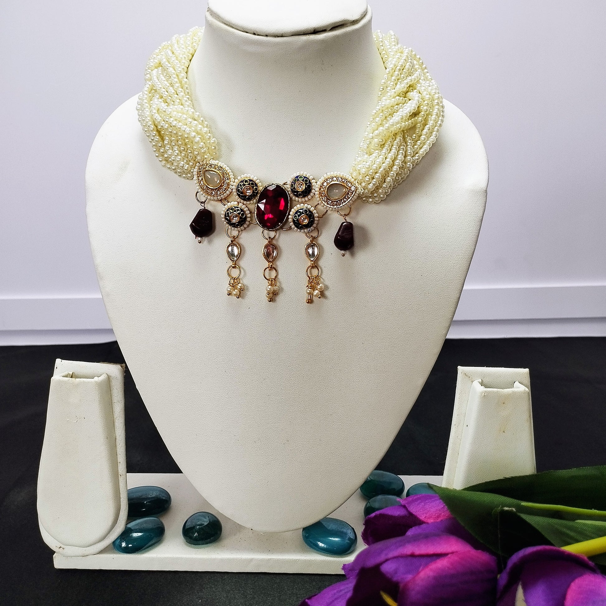 Kundan Necklace-Maroon Pendent